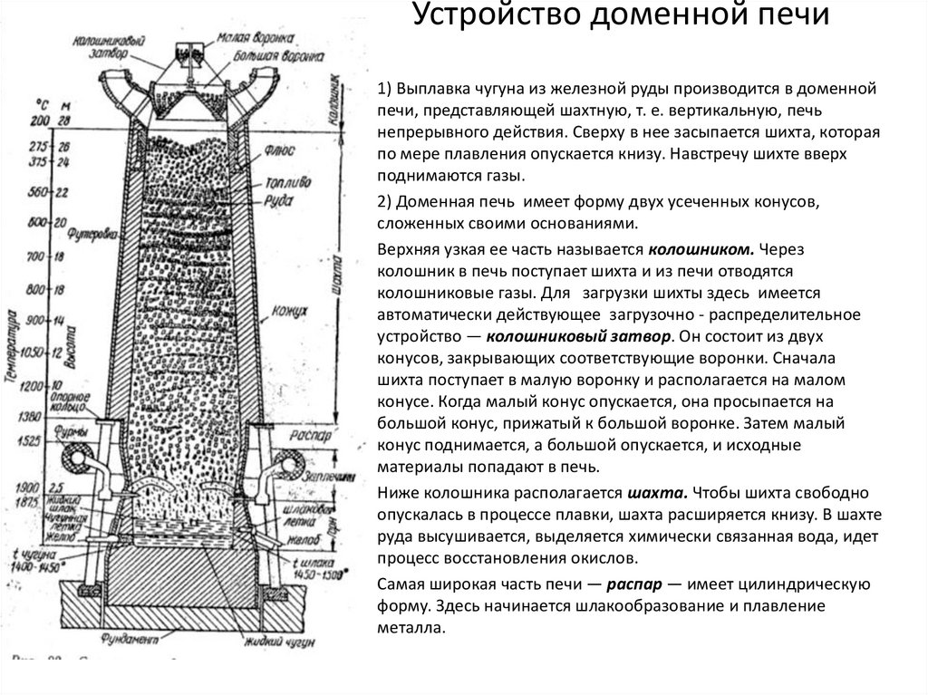 Зона нагрева: верхняя часть печи, где шихта нагревается восходящими газами